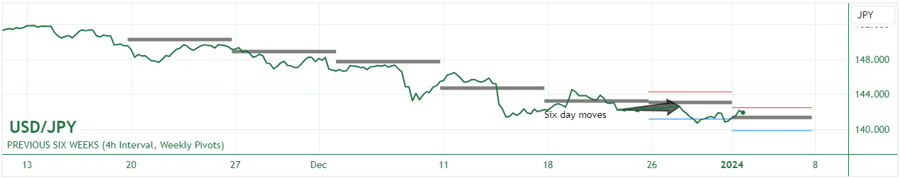 Wednesday January 03, 2024 - US FOMC Minutes: The minutes from the Federal Reserve's meeting could provide deeper insights into the future monetary policy, potentially affecting the USD. If the minutes suggest a more dovish stance due to lower inflation, this could weaken the USD against the JPY.