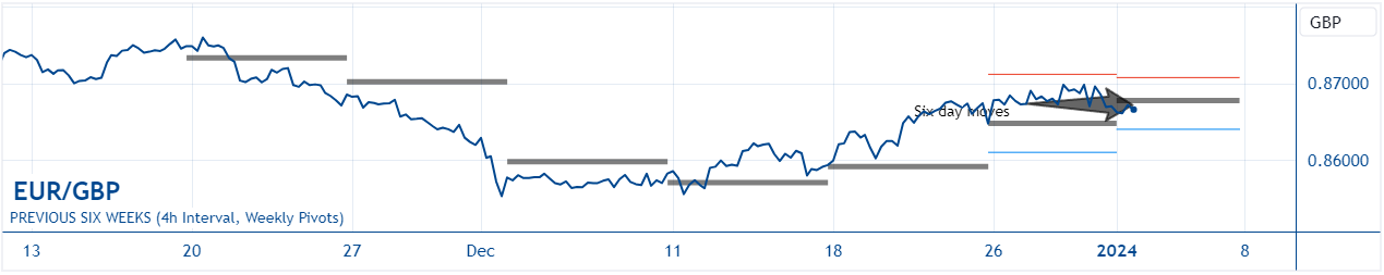 Tuesday, January 9, 2024 - EA Unemployment Rate NOV: The unemployment rate is a key indicator of economic health. If the Eurozone's unemployment is lower than expected, it might indicate economic resilience, supporting the Euro. Conversely, higher unemployment could signal economic troubles, potentially weakening the Euro against the Pound.