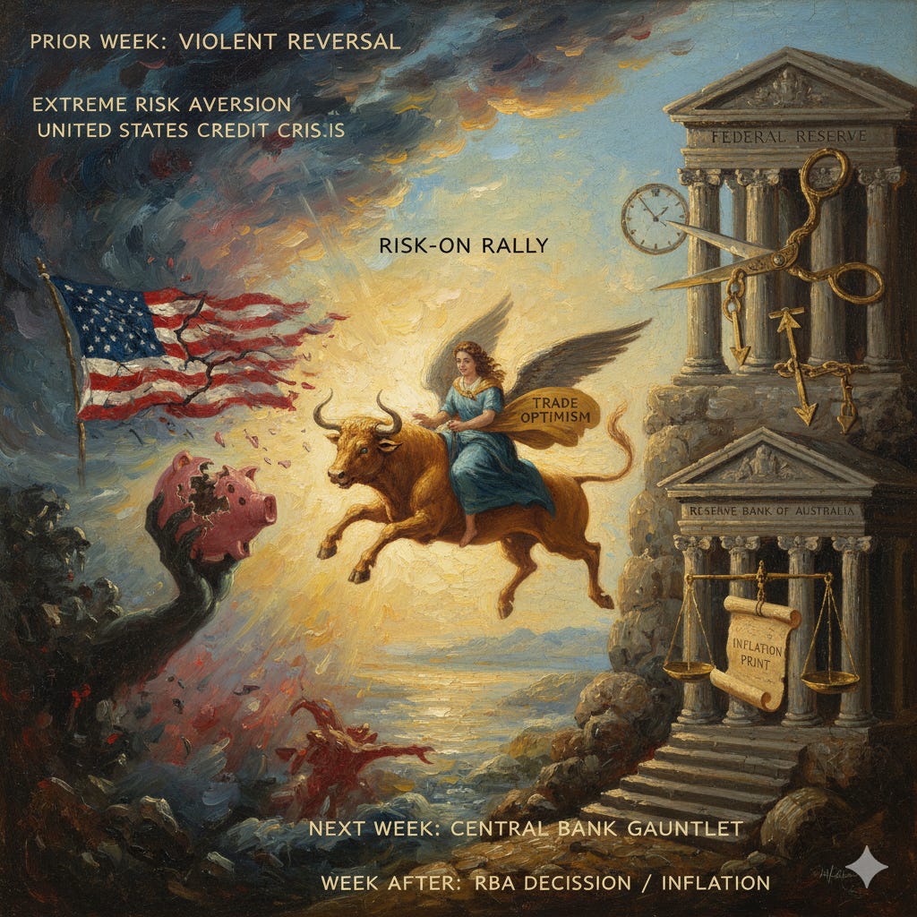 The prior week was defined by a violent reversal from extreme risk aversion, driven by fears of a United States credit crisis, to a powerful risk-on rally fueled by trade optimism.