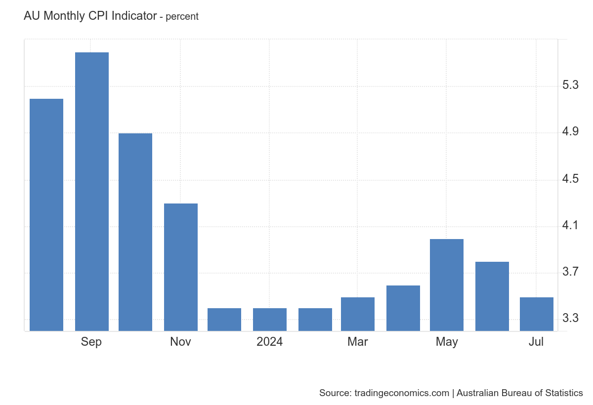 The July CPI data, released today, showed a decline in inflation to 3.5%, providing some optimism for the outlook. This could potentially influence the RBA's decision on interest rates at its next meeting on September 24th.