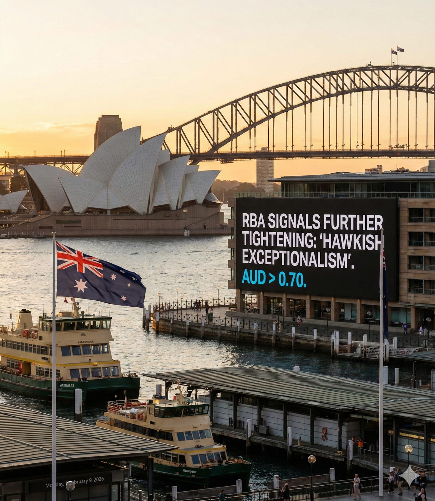 Australia’s “hawkish exceptionalism” is the defining macro theme of early 2026. With the RBA at 3.85 percent and signaling further tightening, the AUD above 0.70, and commodity exports resilient, the