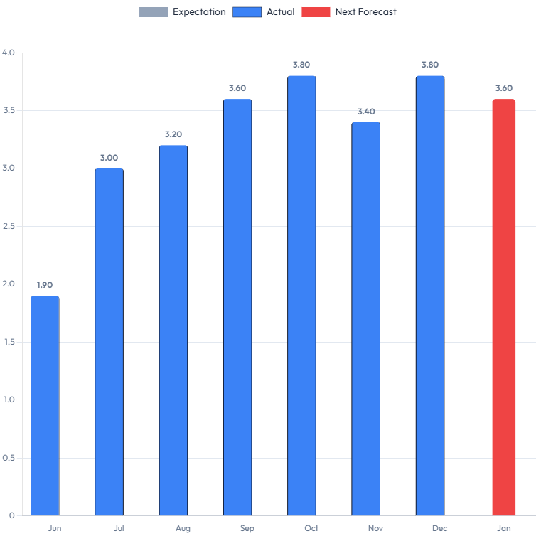 Australia transitioned from quarterly to monthly CPI reporting in November 2025. Headline inflation surged from a low of 2.1 percent in Q2 2025 to 3.8 percent by December 2025, well above the RBA’s 2 to 3 percent target band.