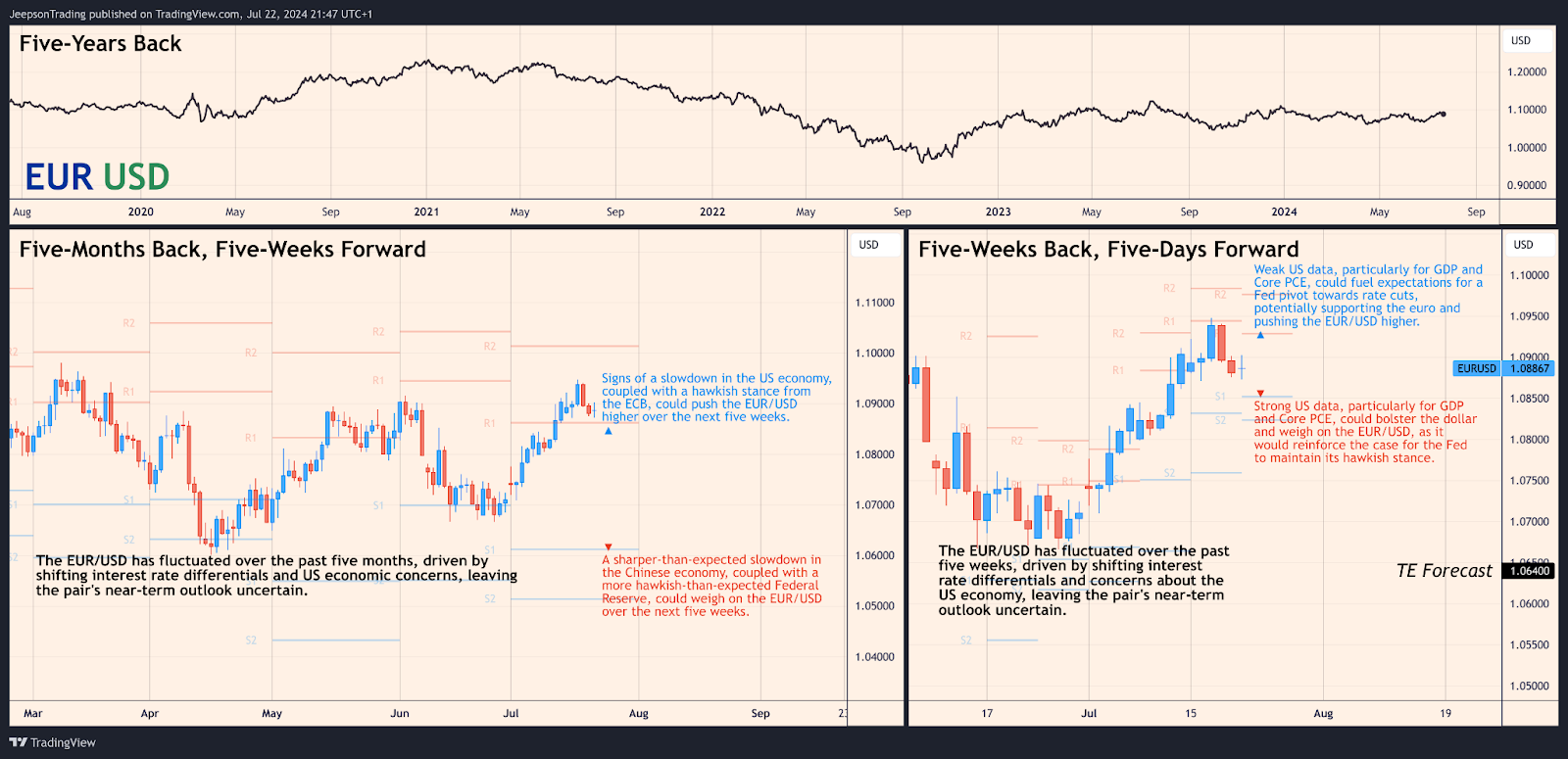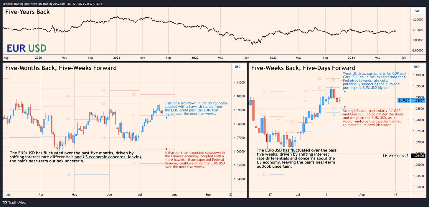 Summary: The EUR/USD has fluctuated over the past five weeks, driven by shifting interest rate differentials and concerns about the US economy, leaving the pair's near-term outlook uncertain.