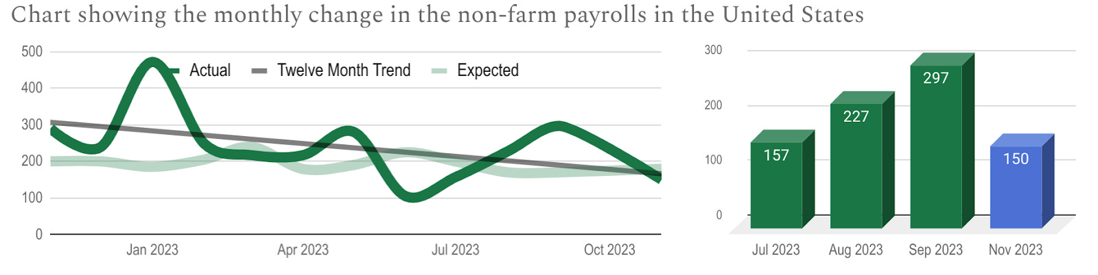 The US non-farm payrolls (NFP) report measures the change in the number of paid workers not employed by farms (due to seasonality) over a given month compared with the previous. The latest data covers the November period and was published on November 3rd by the Bureau of Labor Statistics and the next version is out on December 8th.