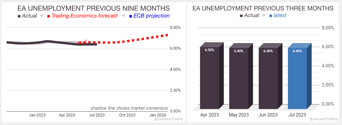 EA unemployment is projected to slightly deteriorate to 6.6% this quarter after coming in at 6.4% for July, matching expectations and suggests a cautiously optimistic outlook for the EA economy and may apply some upward support to the value of the euro.