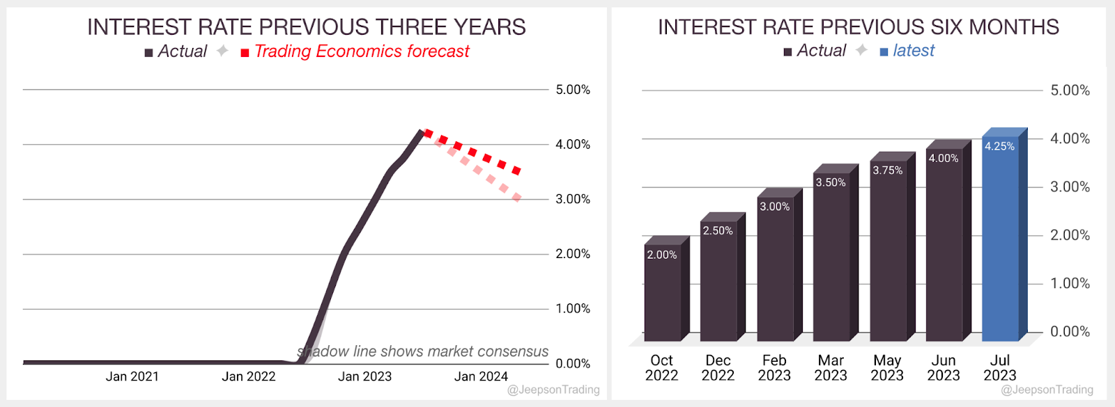 The latest rate is just below the Trading Economics Q3 ‘23 forecast of 4.50% which they also identify as the peak.