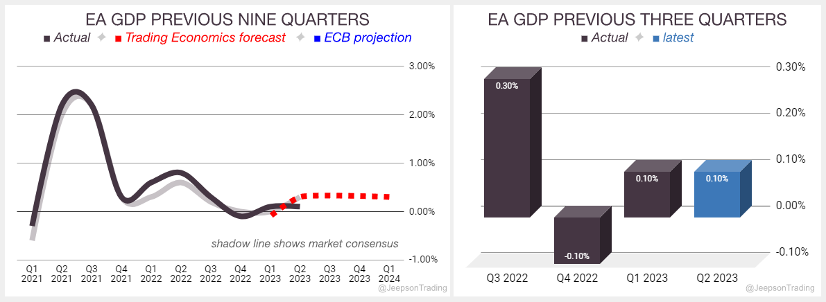 The latest report is on track to achieve the Governing Council’s Real GDP 2023 growth rate projection of 0.9% (revised down from 1.0%) if the Trading Economics Q3 ‘23 forecast of 0.4% is accurate.