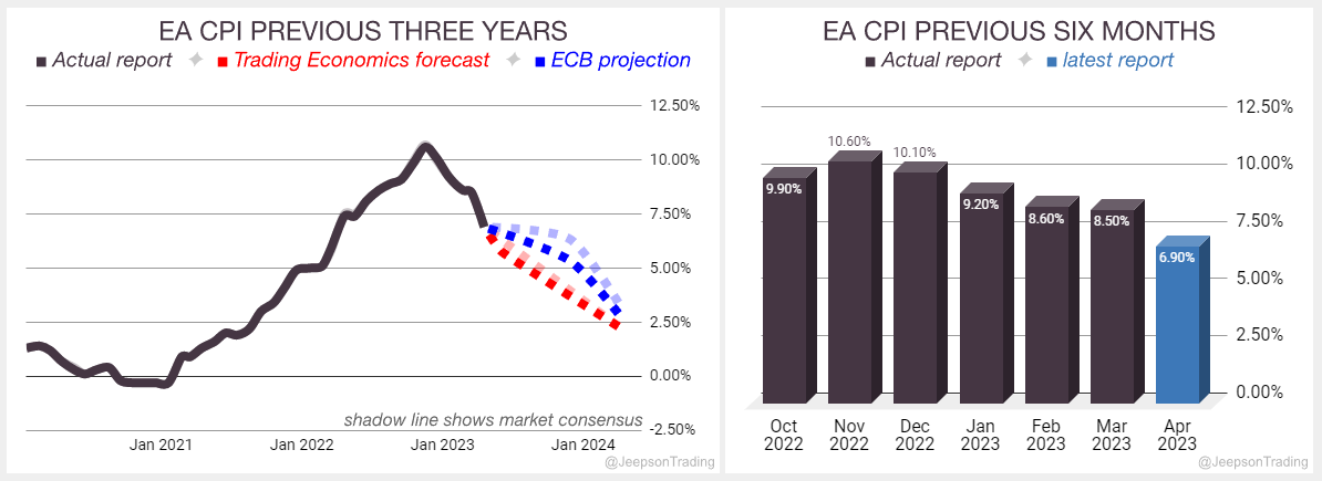 Sources: European Central Bank, Macroeconomic Projections, Trading Economics