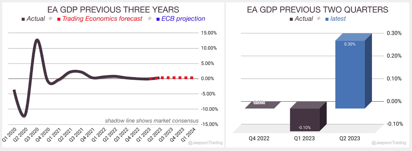 Flash Q2 ‘23 estimate slightly beat expectations coming in at 0.3% expansion and up from -0.1% contraction in Q1 ‘23.