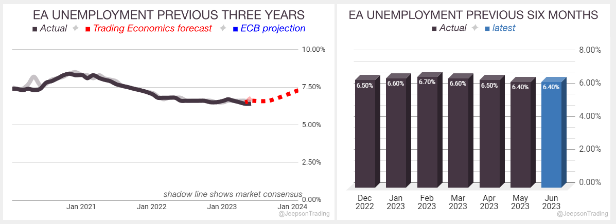 June ‘23 report slightly beat expectations coming in at 6.4% which is the same as April ‘23 which has been revised down from 6.5%.