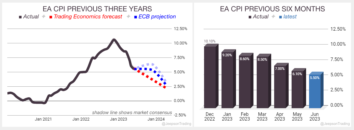 CPI in the EA for June slowed a lot to 5.5% annual inflation from 6.1% in May