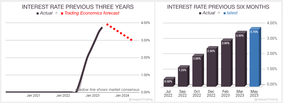 The Main Refinancing Operations rate was hiked on the 4th of May by 0.25% to 3.75%