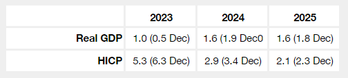 In March, the Governing Council raised their 2023 growth projection (Real GDP) to 1.0% from 0.5%