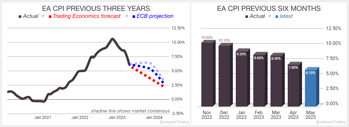 CPI in the EA for May slowed a lot to 6.1% annual inflation from 7.0% in April