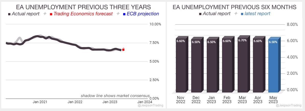 Trading Economics have lowered their Q2 2023 unemployment rate forecast to 6.6% from 6.8%