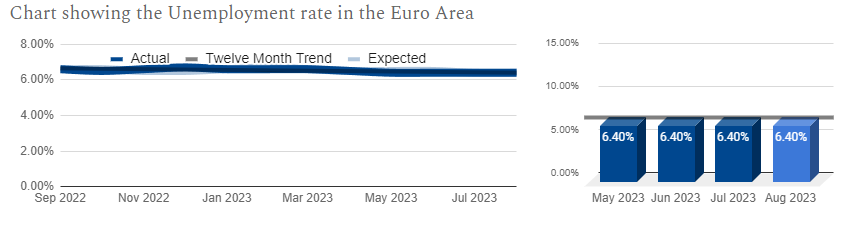The EA unemployment rate report measures the number of people actively looking for a job as a percentage of the labour force over a given month. The latest data covers the August period and was published on October 2nd by Eurostat and the next version is out on November 3rd.