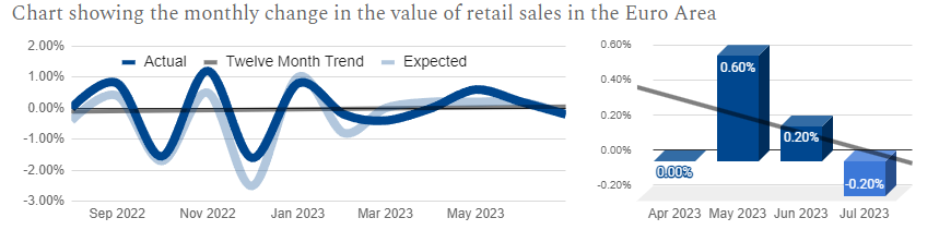 Derbyshire, UK – September 28, 2023 - This is the currency report for the Euro and is intended to be a reference aid for your own analysis and trade planning. This edition contains a refreshed format for readability and now includes retail sales data. The next update will be after the EA CPI report on Tuesday, September 29th, or before if any significant event occurs.