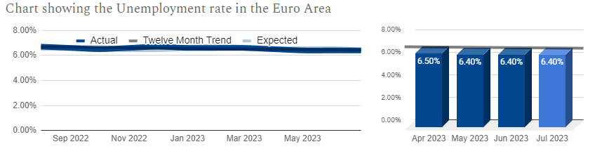 The EA unemployment rate report measures the number of people actively looking for a job as a percentage of the labour force over a given month. The latest data covers the July period and was published on August 31st by Eurostat and the next version is out on October 2nd.