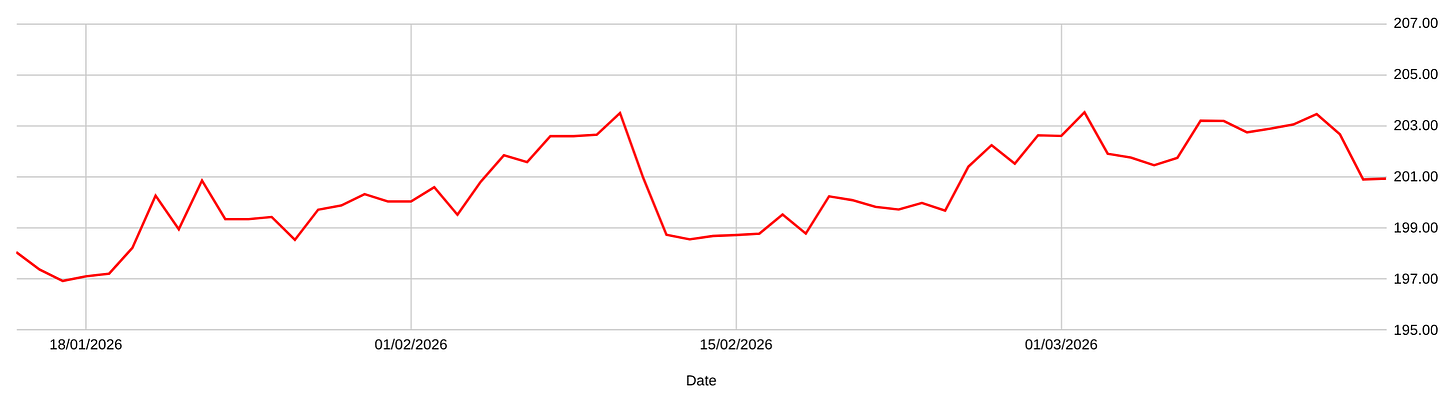 Over the last few months, CHF/JPY experienced massive upside volatility as the CHF benefited from European geopolitical fears while the JPY suffered under intense political chaos. During previous weeks, upside movement became highly convincing; the Bank of Japan hike to 0.75 percent was entirely negated by the 100 USD oil shock, which devastated Japan’s energy-dependent economy. In upcoming days, continued upside is highly convincing as global investors enthusiastically park capital in Switzerland amidst Middle Eastern warfare . Over the next few weeks, upward movement remains highly convincing until global energy logistics stabilise, keeping the JPY incredibly weak .