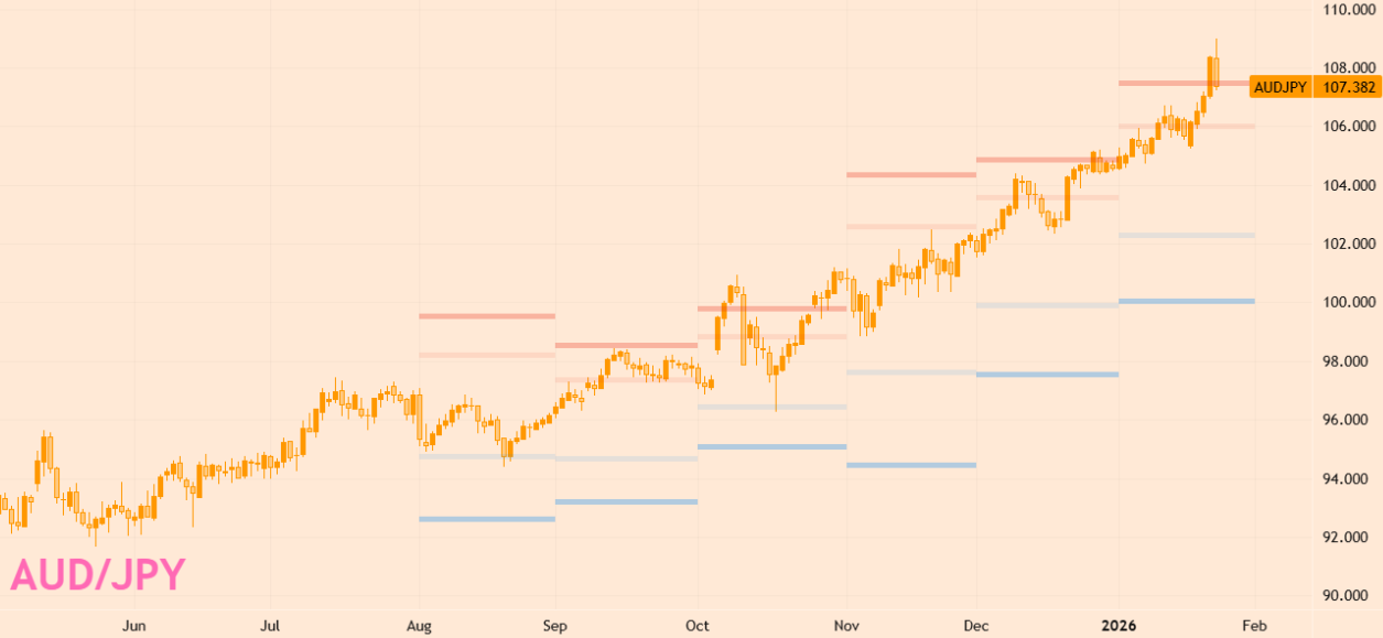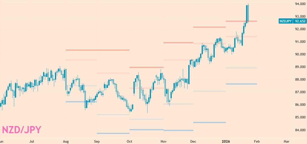 Monday, 26 January 2026: NZD/JPY and AUD/JPY are the currency pairs I am most interested in during the upcoming week. This is down to the yield divergence opening up as the market narrative adjusts to a “Risk-On / Yield Hunt” mood following the US tariff walk-back.