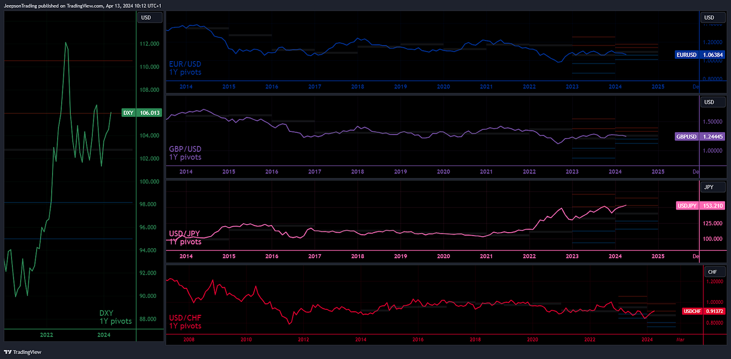 Saturday, April 13, 2024 (Week 16): The US dollar remains resilient as the Federal Reserve navigates a path toward gradual policy normalisation. Economic strength and persistent inflation support the Fed's stance, while other major currencies like the euro, pound, and yen face their own unique challenges. Geopolitical tensions add a layer of uncertainty. Forex traders must closely monitor economic indicators, central bank policies, and market sentiment to capitalise on opportunities and mitigate risks in this dynamic global currency market.
