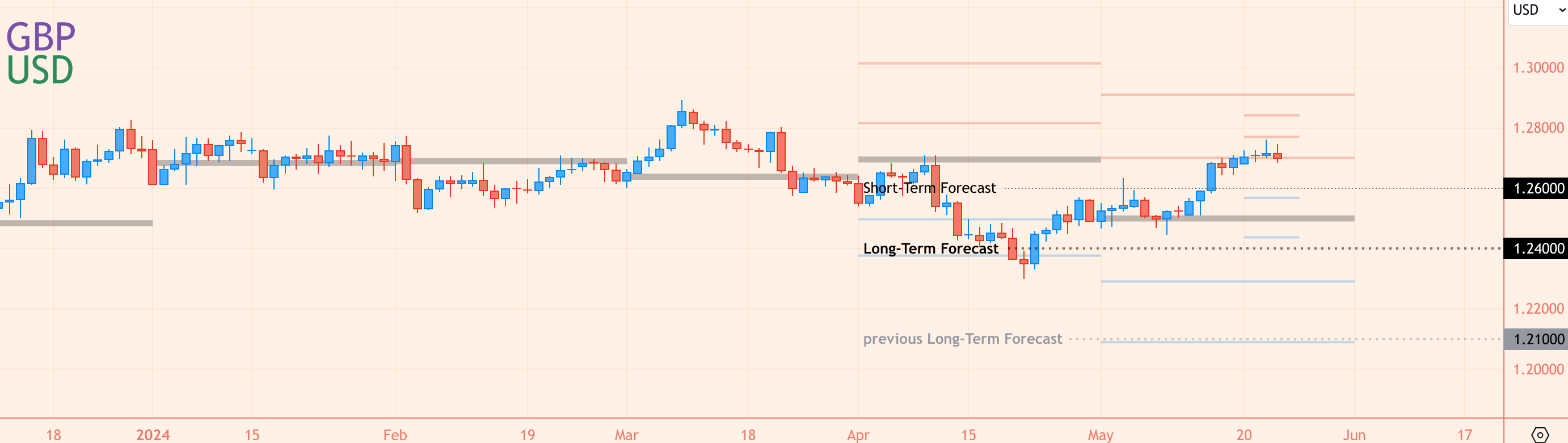 Overall, the GBP outlook for the next five weeks is uncertain. The currency could weaken if the economic recovery falters, if the BoE adopts a more dovish stance, or if political uncertainty intensifies in the lead-up to the general election. Conversely, the GBP could strengthen if the economic recovery proves more robust than anticipated, if the BoE maintains its hawkish stance, or if the outcome of the general election is perceived as positive for the UK economy.