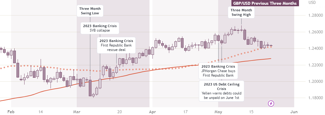 The strength of the GBP in the previous three months was due to a number of factors, including rising expectations that the Bank of England would raise interest rates to combat inflation, as well as concerns about the US debt ceiling. However, sentiment about the debt ceiling has recently improved, and the US dollar has regained some value as a result.