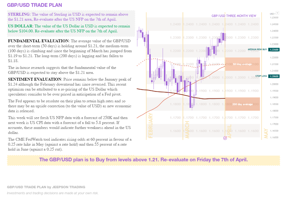 GBP/USD Trade PlanBuy dips towards three-month averageGavin PearsonApr 03, 2023ShareOrders are automatically placed for copy investors at https://www.etoro.com/people/jeepsontrading