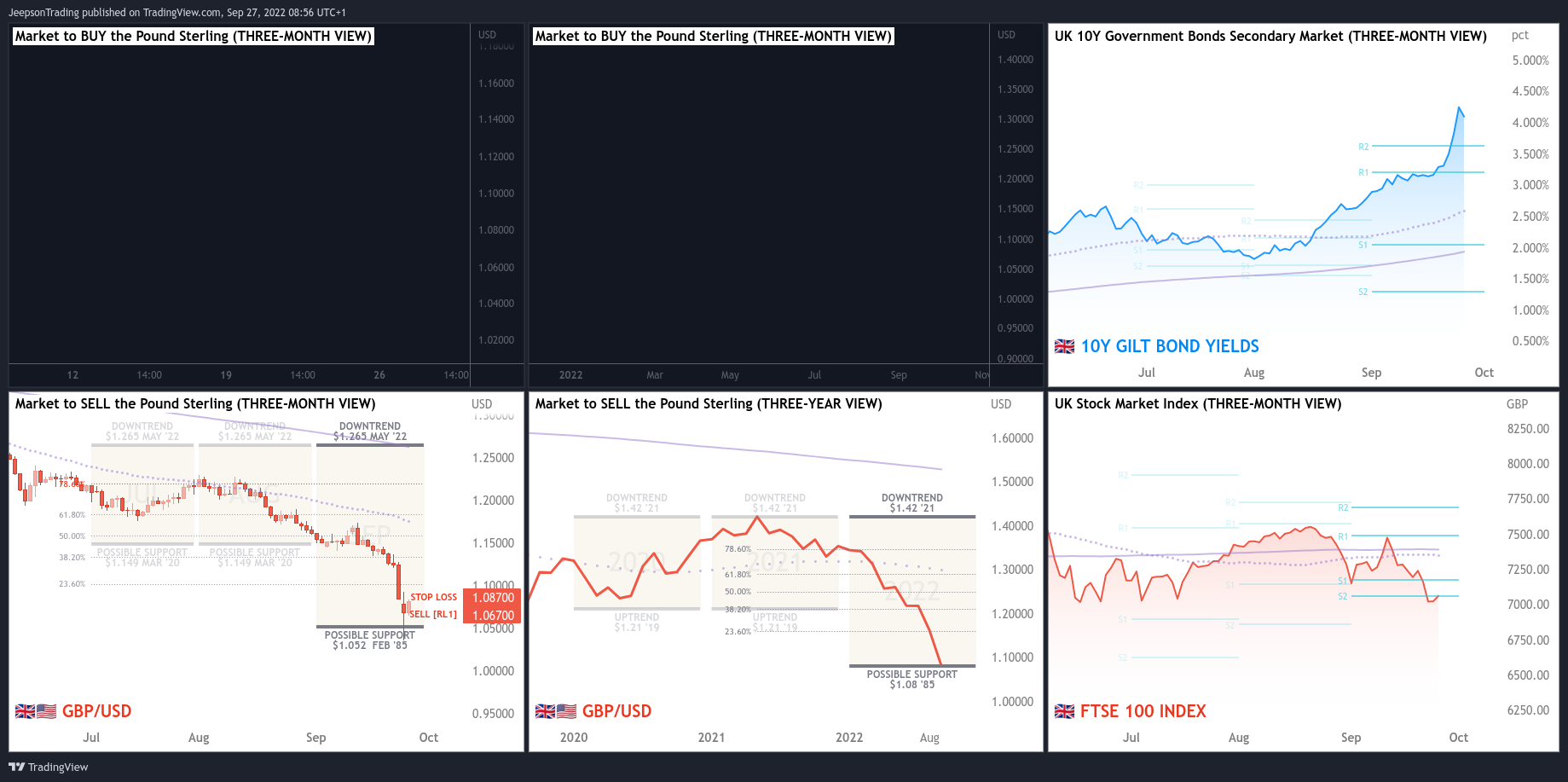 The sentiment that is presently influencing the valuations on the Pound Sterling is the narrative regarding the economic slowdown and how fast it progresses. The recent indicators suggest that the situation is worsening faster than expected, especially with the retail sales contraction at more than a percent below expectation. However - last Friday the new Chanceller, Kwasi Kwarteng announced an income tax reduction and removal of red tape with the goal of stimulating growth. The immediate market reaction was overwhelmingly pessimistic as funding through borrowing will burden the economy for decades if this gamble does not work out.