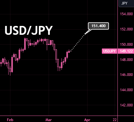 USD/JPY forecast to climb to ¥151.4 in March