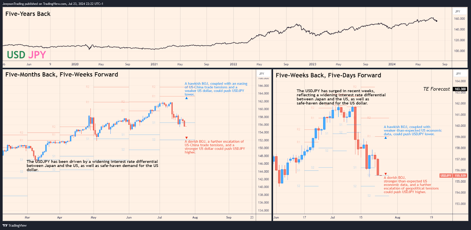 Downside: A dovish BOJ, stronger-than-expected US economic data, and a further escalation of geopolitical tensions could push USDJPY higher.