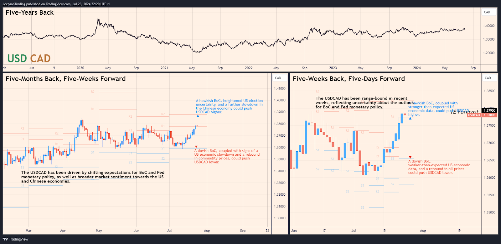Summary: The USDCAD has been range-bound in recent weeks, reflecting uncertainty about the outlook for BoC and Fed monetary policy.
