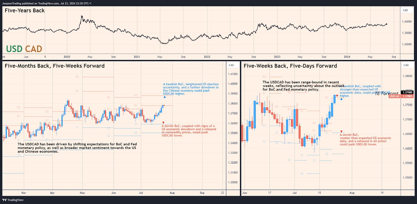 Upside: A hawkish BoC, coupled with stronger-than-expected US economic data, could push USDCAD higher.