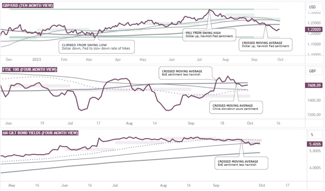 Pound Outlook Bearish as UK Economy Slows, Inflation Remains High: The Bank of England kept interest rates at 5.25% in September, but said it is still committed to bringing inflation back to 2%. The UK economy is underperforming and has a gloomy outlook, with GDP growth expected to stagnate and unemployment expected to rise. Macroeconomic signals suggest a bearish outlook for the pound, as the economy slows and inflation remains high. Geopolitical events, such as the cost-of-living crisis and the war in Ukraine, are also adding uncertainty and putting downward pressure on the value of the pound.
