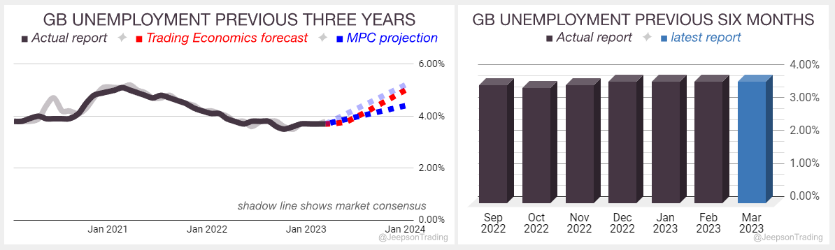 This matches the MPC projection of 3.8% unemployment for Q1 with a climb to 4.4% by next year while Trading Economics are forecasting 4.0% in Q2, up from 3.8%.