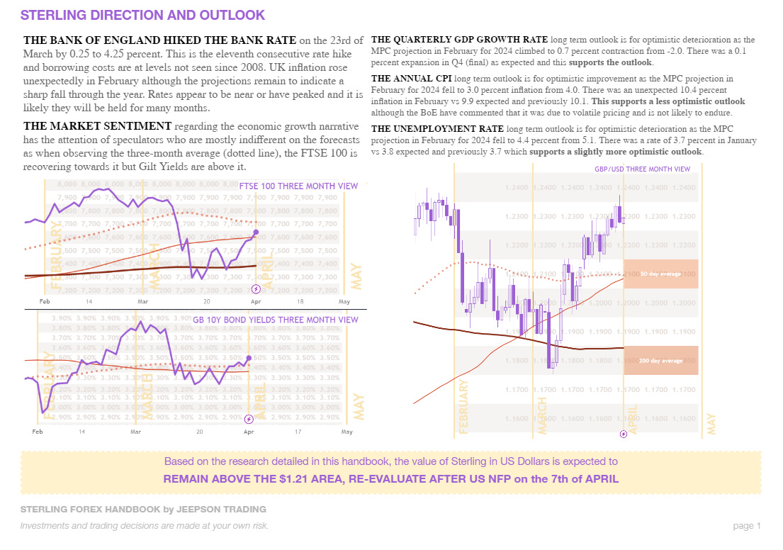DERBYSHIRE GB / APR 03 - This report provides a concise breakdown of the latest Sterling research and is intended to be used as a reference guide when trading the markets.