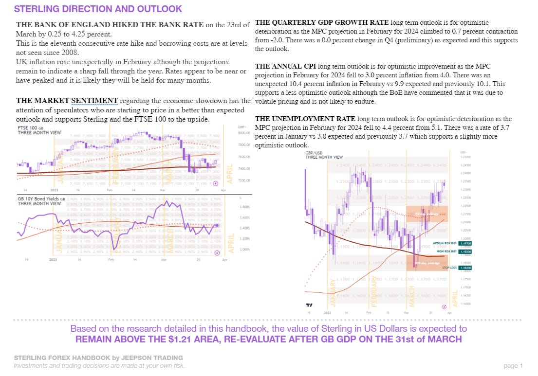 DERBYSHIRE GB / MAR 27 - This report provides a concise breakdown of the latest Sterling research and is intended to be used as a reference guide when trading the markets.