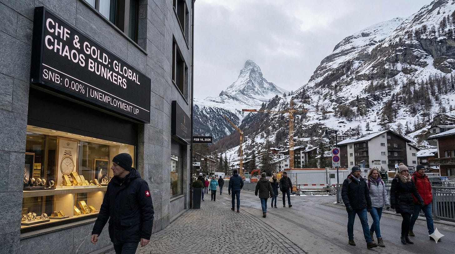 Switzerland has managed to stabilize after the 2025 tariff shock, but it has come at the cost of industrial contraction and rising unemployment. The SNB is locked at 0.00 percent to fight disinflationary pressures, while the Swiss Franc and Gold remain high-value bunkers against global chaos. The outlook now hinges on the US “Warsh Effect” not crushing global risk appetite.