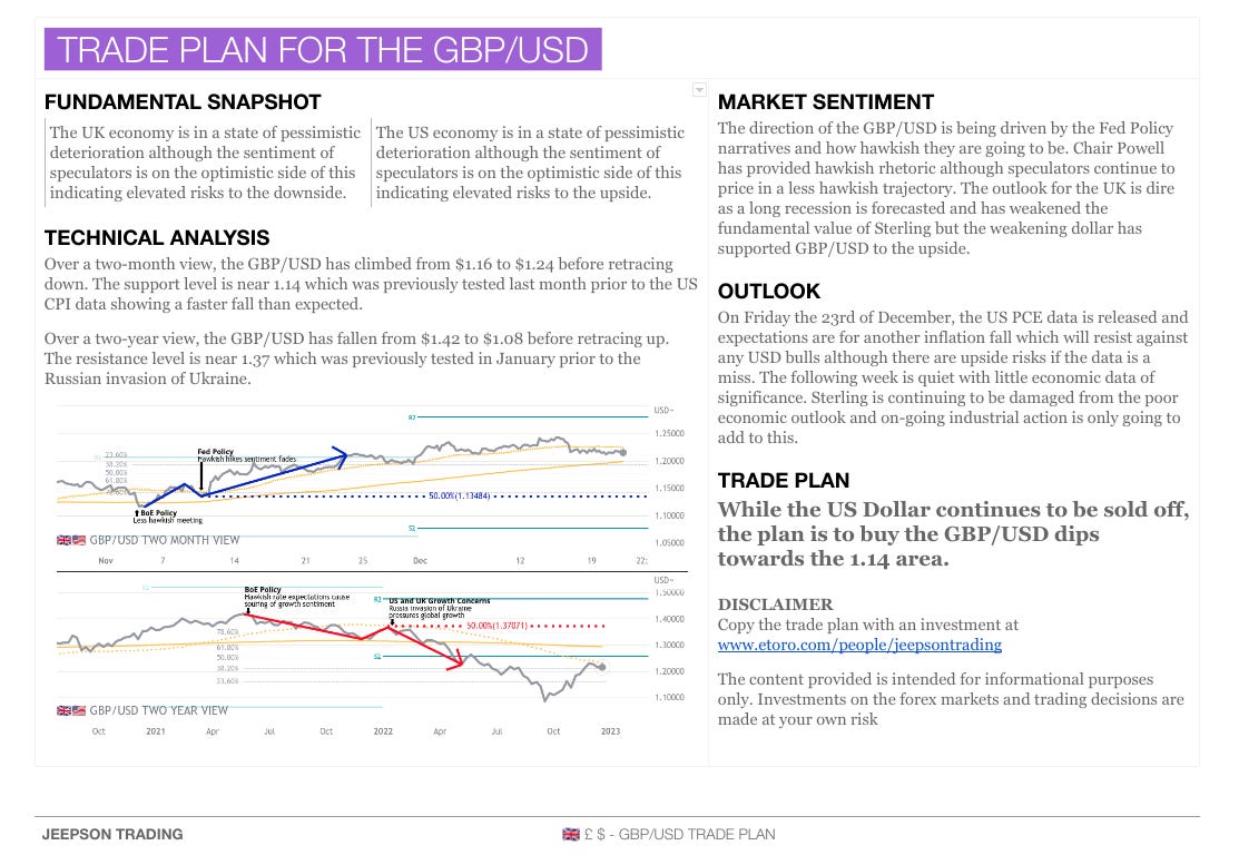 While the US Dollar continues to be sold off, the plan is to buy the GBP/USD dips towards the 1.14 area.