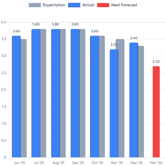Consensus / Long Term Views: Most economists believe the spike to 3.40 percent in December was a blip caused by volatile airfares. The consensus view is that inflation will drop back to 3.00 percent in the next print and return to the Bank’s 2.00 percent target by the second quarter of 2026.