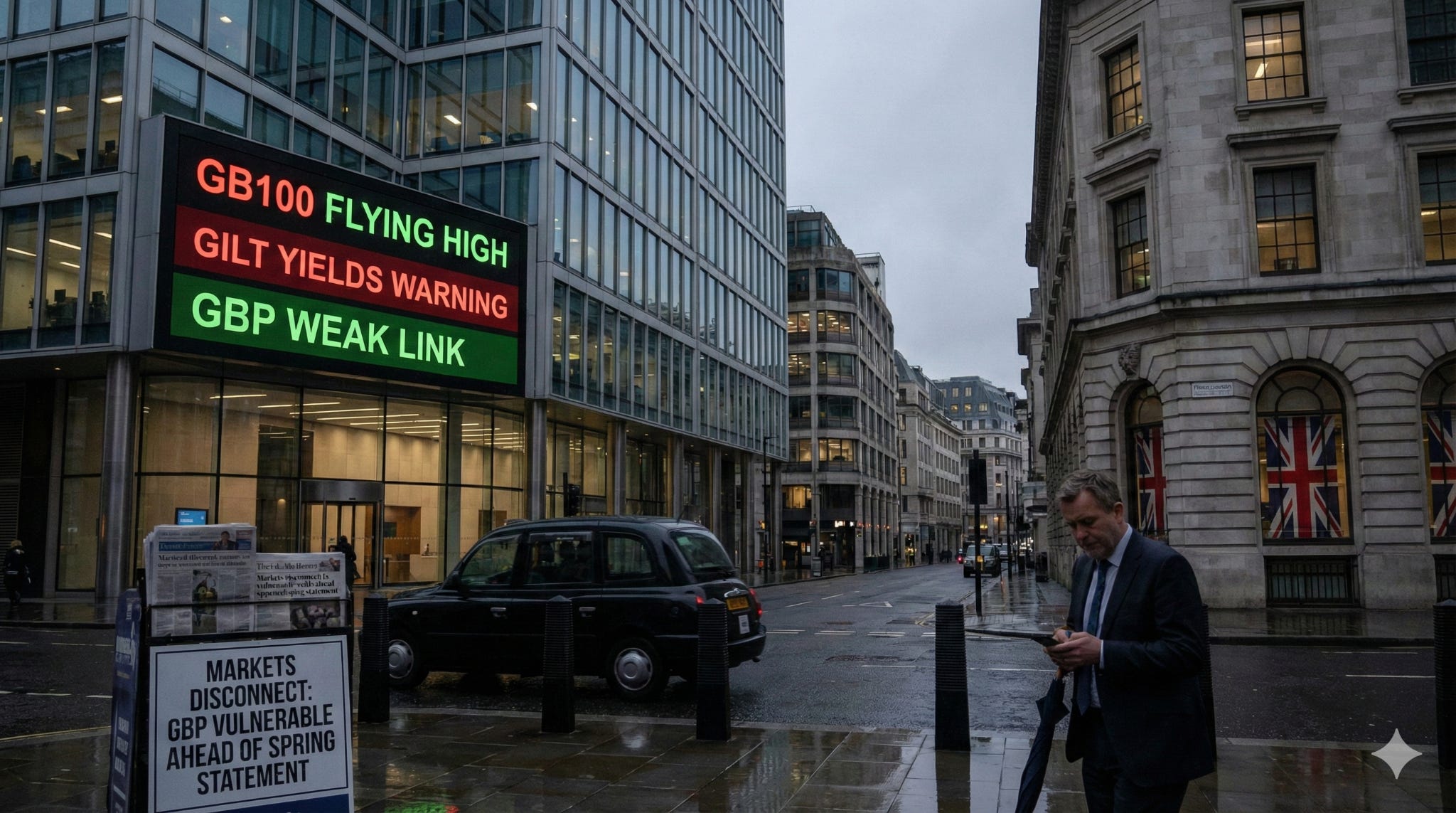 There is a massive disconnect in the markets: the stock market (GB100) is flying high thanks to global factors, while the domestic indicators—Gilt yields and the GBP—are flashing warning signs about the UK economy. The sentiment is cautious. The GBP is the weak link here; it is highly vulnerable to the interest rate differential widening against the USD. Bond traders are keeping their finger on the sell button ahead of the Spring Statement.