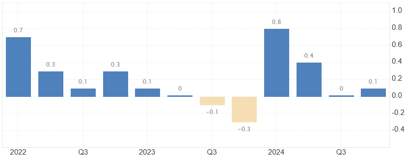 The UK narrowly avoided a recession with 0.1% Q4 2024 growth. Despite this, the Bank of England's monetary policy is complicated by high inflation and low manufacturing and construction PMIs.