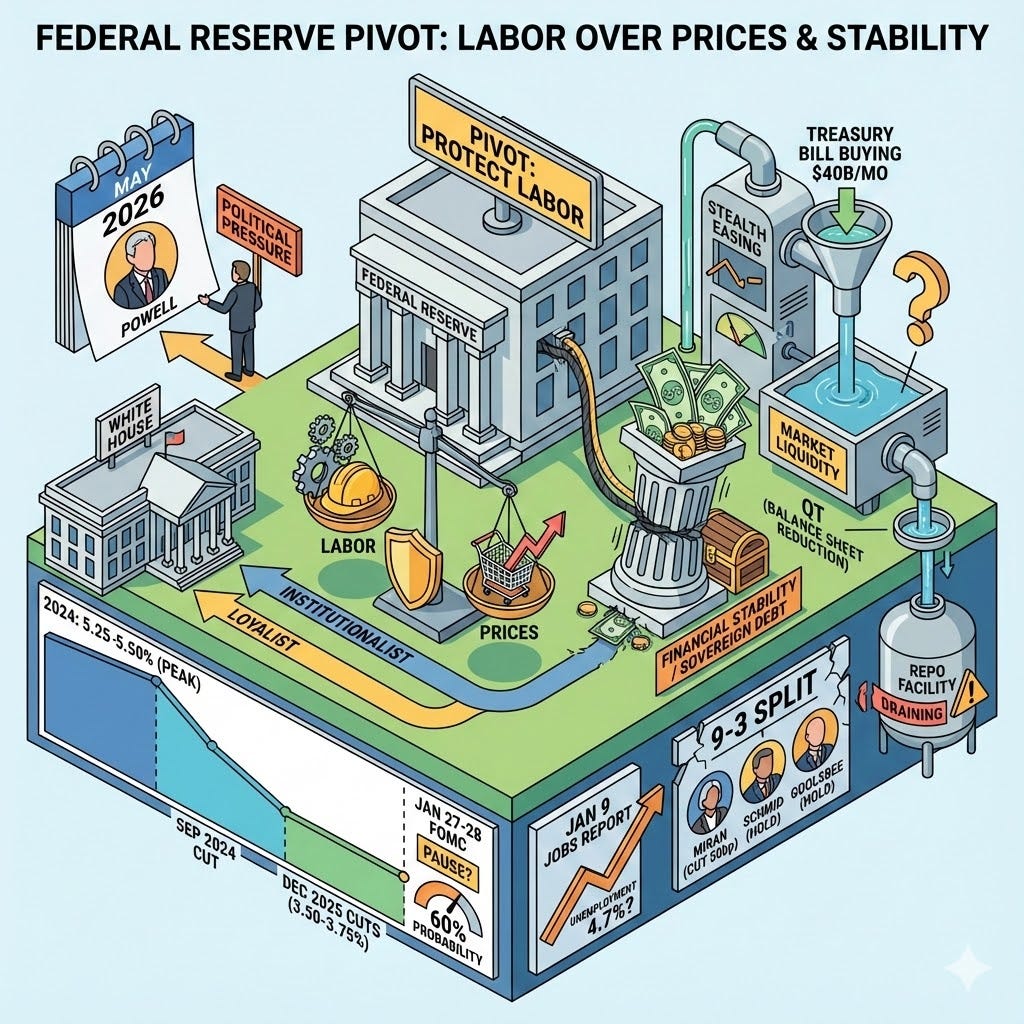 The Federal Reserve System, led by Chair Jerome Powell, theoretically operates with a dual mandate of maximum employment and stable prices. However, if you look at their recent actions, the current landscape has effectively forced a third unofficial mandate: financial stability amidst massive sovereign debt issuance. The central bank’s leadership is currently in a state of high tension. With Chair Powell’s term expiring in May 2026, the politicization of the Fed has intensified. The administration is openly favoring loyalist candidates like Kevin Hassett over institutionalists, a dynamic that has eroded the market’s perception of the Fed’s independence and introduced a political risk premium into USD assets. We are seeing a Fed that is increasingly sensitive to political pressure to keep financing costs manageable for the Treasury (https://www.federalreserve.gov/aboutthefed/bios/board/powell.htm).
