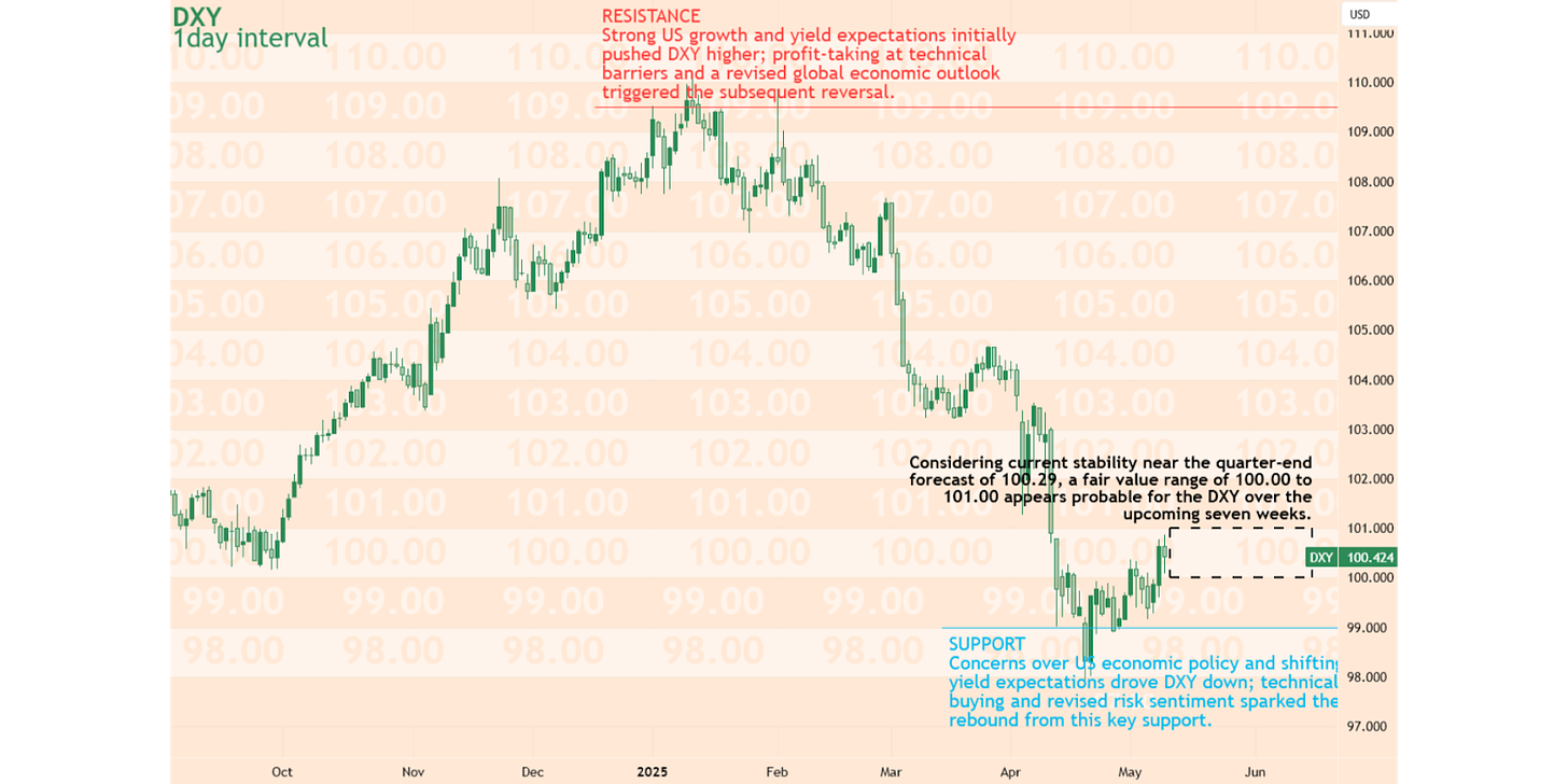 Over the last seven weeks, the Dollar's value has really been swayed by two main things: new US trade tariffs and how the market's reaction to US economic news. For example, early April saw the Dollar dip when Q1 growth surprisingly shrank (mostly due to tariffs skewing import figures) and a key jobs report disappointed. This fueled bets the Fed would have to cut rates. But the Dollar showed some fight, bouncing back, especially with any optimism on US-China trade talks or when big economic numbers, like the April jobs report, beat expectations, calming immediate recession fears. It’s really been a tug-of-war: will the Fed ease, or will the Dollar remain a safe haven amid trade worries?