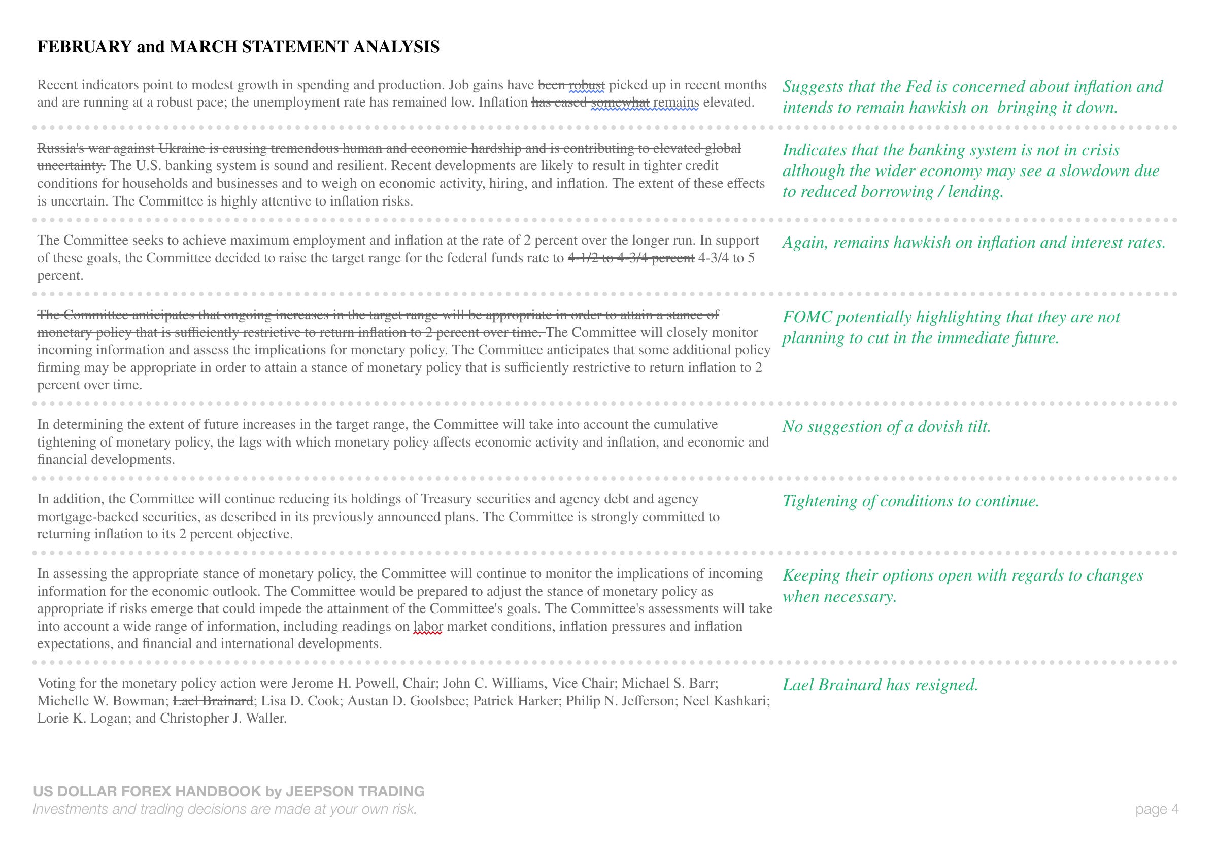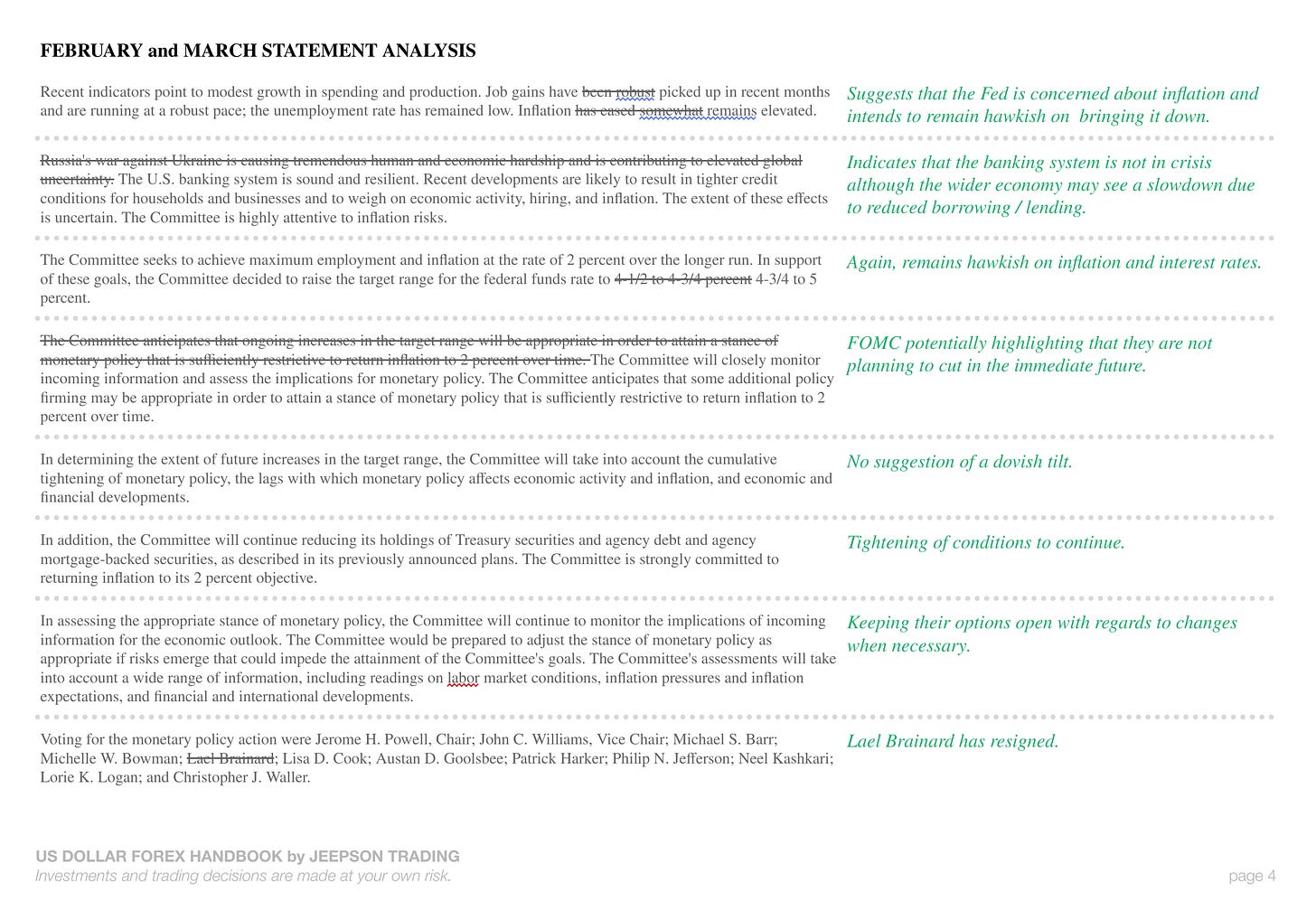 DERBYSHIRE GB / APR 02 - This report provides a concise breakdown of the latest US Dollar research and is intended to be used as a reference guide when trading the markets.