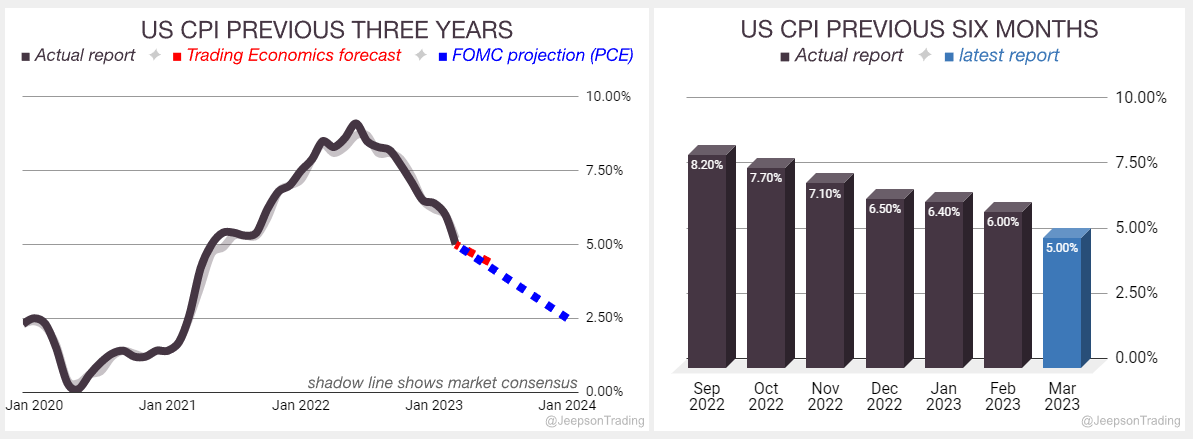 US CPI in the 12 months to February was 5.0 percent inflation, lower than the 5.2 percent expected and much lower than the 6.0 percent in February. The FOMC projects a 2.5 percent inflation rate in 2024, the same as the previous projection. Trading Economics forecasts a 4.4 percent inflation rate in Q2, unchanged from the previous forecast. The April report is due on Wednesday the 10th of May.