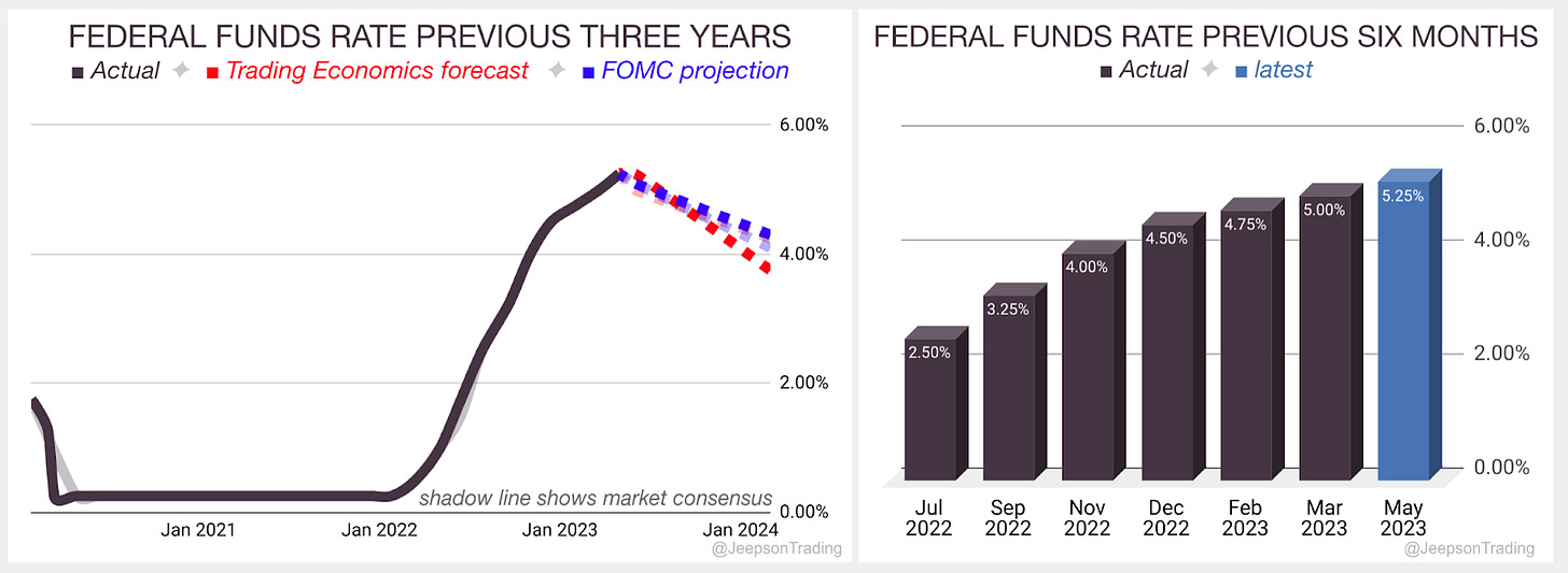 The FOMC decided to raise the federal funds rate by 0.25% on the 3rd of May 2023, to a range of 5.00% to 5.25%. This was the tenth consecutive rate hike, and borrowing costs now match the 2007 high of 5.25%. The Fed signalled a potential pause in the tightening cycle. The central bank also noted that tighter credit conditions could weigh on economic activity.