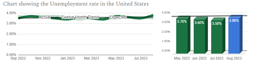 The US unemployment rate report measures the number of people actively looking for a job as a percentage of the labour force over a given month. The latest data covers the July period and was published on September 12th by the Office of National Statistics and the next version is out on October 17th.