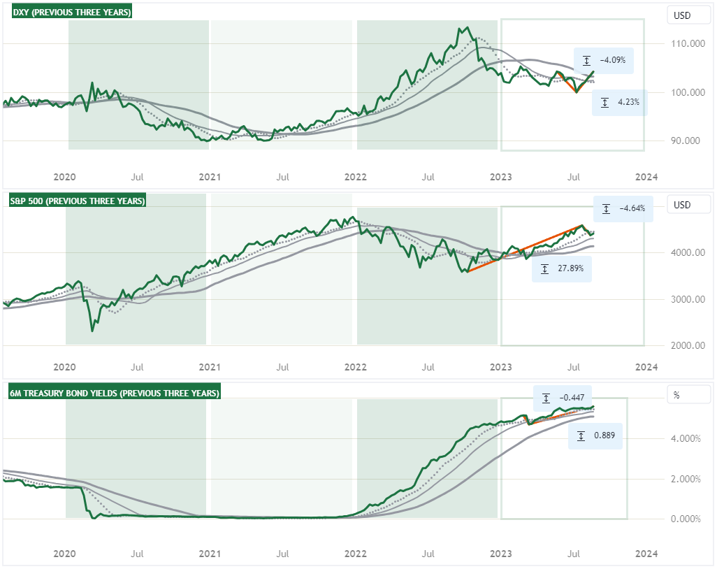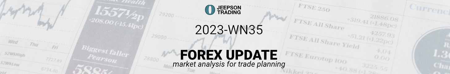 DERBYSHIRE GB / 2023, Week Number 35 - Charts revised, sentiment post Jackson Hole risk off although impacted by holidays. Next update after the US Consumer Confidence and Jolts report on Tuesday, August 29th.