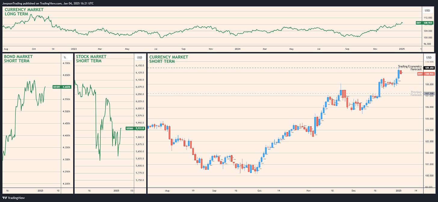 DXY Index: Trading Economics forecasts 109.45 by the end of Q1 2025 and 112.50 in 12 months. Given the Fed's hawkish stance and the potential for fiscal stimulus, these forecasts seem achievable.